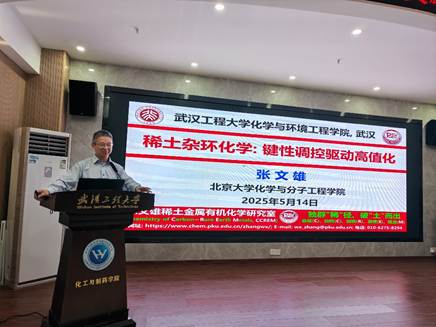 张文雄教授以《稀土杂环化学:键性调控驱动高值化》为题进行学术报告。报告中,张教授着重强调稀土作为我国不可再生的战略资源,在基础科研与实际应用层面均占据关键地位。他以自身科研经历为脉络,分享开展稀土杂环研究时面临的技术挑战与探索历程。通过系统阐述合成稀土杂环化合物的反应路径探索、严谨的机理研究及验证过程,揭示稀土杂环化合物独特的结构特征与多元反应模式。从稀土杂环对白磷的高效活化,到非平面方向性的创新发现,再到稀土杂环戊二烯与苯环的特殊的复分解反应,一系列研究成果展现出稀土杂环化学的无限潜力。