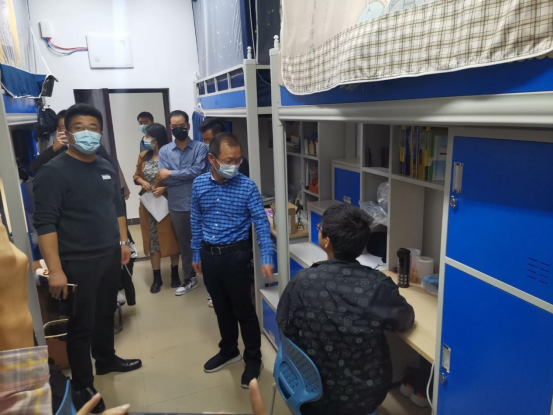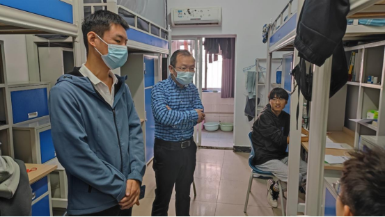 此次检查以年级为单位,张宗良一行到相应年级进行检查。本次检查主要针对宿舍安全和用电安全两方面,包括大功率电器的使用、插线板的摆放、床铺、书桌的整理以及个人日常核酸检测情况。