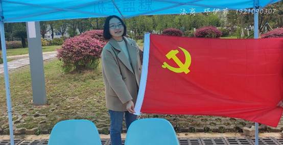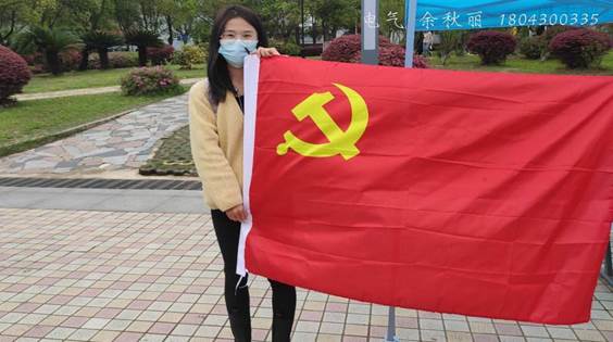 参与此次活动的叶思琪同学说:此次“我和党旗有个合影”活动进一步加深了自己对党的了解,激励自己努力学习,永远跟党走,为党旗增添光彩。
