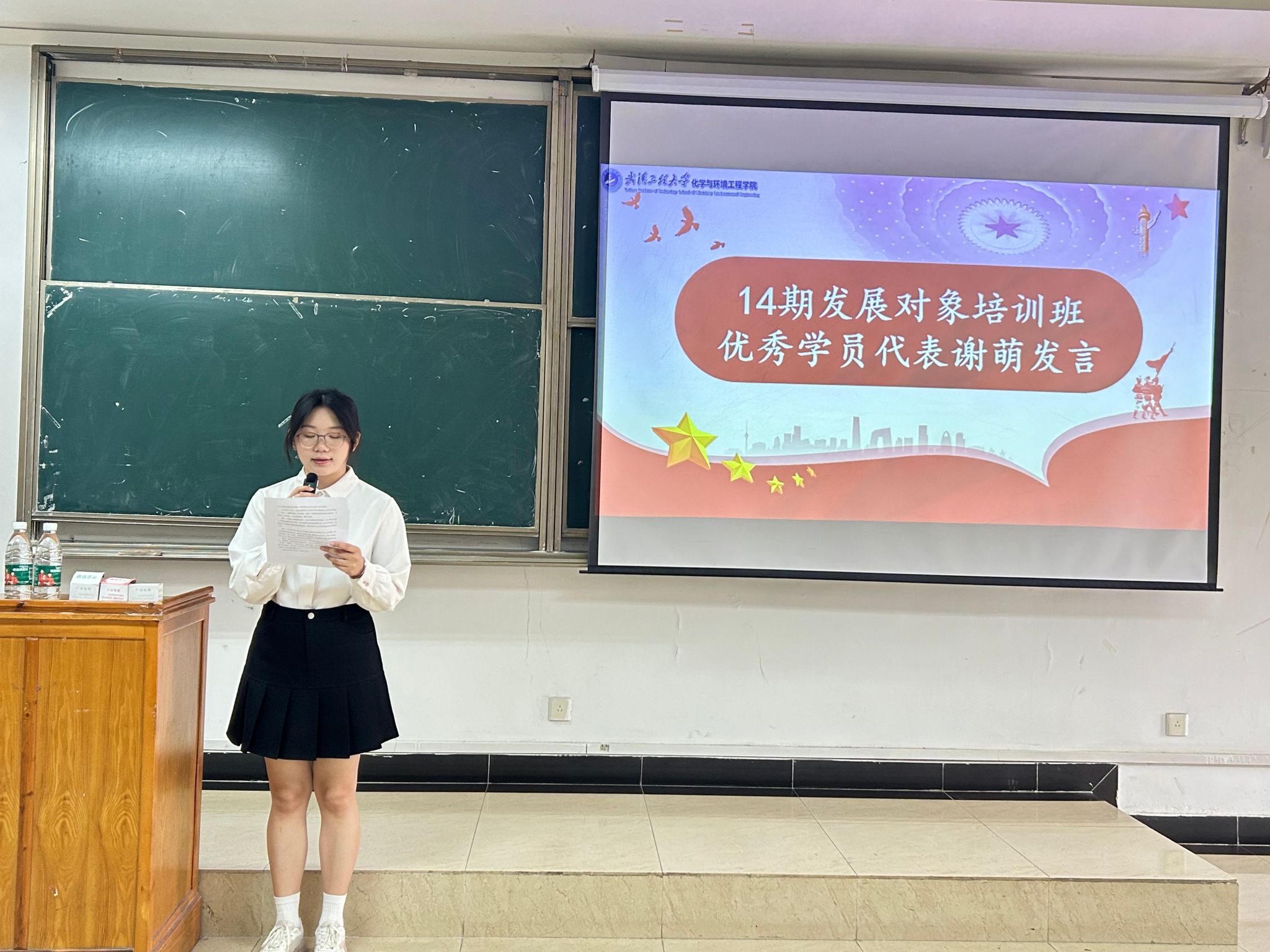 第14期发展对象培训班优秀学员谢萌代表发言,分享了成为入党积极分子以来学习实践党的相关理论知识的心得感悟,希望同志们珍惜宝贵机会,认真参加培训学习。全面学习了解党的光辉历史,从中汲取所蕴涵的智慧与精神作为日后发展行动的指南。