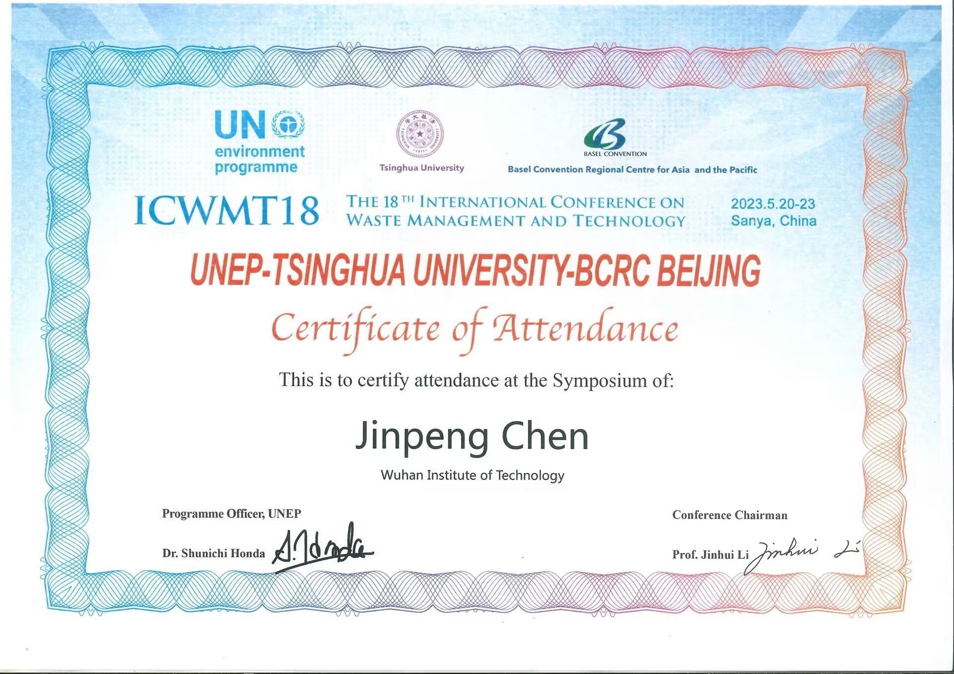 环工专业22级研究生陈金鹏全程用英文在研究生会议专场作了题为“Characterizing the generation and environmental consequence of express delivery packaging materials/wastes from university students in China”的学术报告。学生论坛由联合国环境署与清华大学/巴塞尔公约亚太区域中心联合组织,旨在为全球性废物管理问题提供一个良好的平台,有助于实现可持续发展目标和绿色未来。本次论坛是“第十八届固体废物管理与技术国际会议”的重要组成部分,以“减污降碳协同推进”为主题,邀请了国内外高校研究生同学就固体废物、化学品和循环经济等领域的热点问题做报告和专题讨论。学生论坛由来自联合国环境规划署官员日本的Shnichi Honda(本多俊一)先生做开幕致词,由来自清华大学、澳门科技大学、同济大学、浙江大学等知名高校的研究生代表和老师们参与并做学术交流,由巴塞尔公约亚太区域中心执行主任及清华大学环境学院李金惠教授做总结致辞。陈金鹏同学熟练地运用英文向在场的专家和学者介绍了我国校园快递包装废弃物的产生、流向特征及环境影响,以及美丽中国---“双碳”背景下的“减碳”情景及路径研究。汇报内容引起了相关入会专家和学者的兴趣,陈金鹏同学全程(用英文从容地与在场学者进行了交流和讨论(共计15分钟),并就数据的分析和研究结果等相关问题进行了进一步深入交流和讨论。