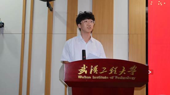 青年教师代表吴汉军教授讲话,他给同学们提出三点意见:一是“先成人,后成才”,强调品格的锤炼与精神的成熟是成才的根本;二是“成人不自在,自在不成人”,提醒大家勇于承担责任、不畏困难,远离虚度与安逸;三是“成功没有捷径”,引导同学们尽早确立目标、勤奋坚持、未雨绸缪,以实际行动提升自我、实现理想。并教育同学们“目标、勤奋、坚持”三要素是助力我们成功所必须的。