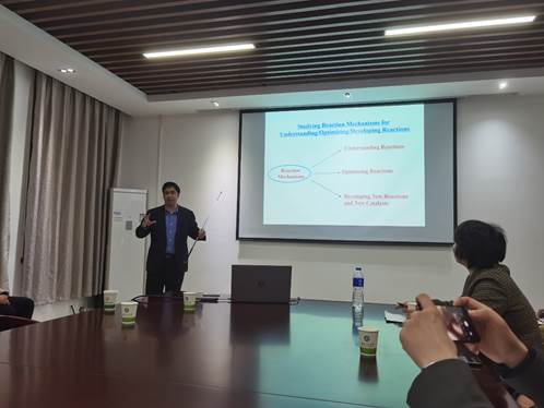 相关师生做了题为《成环反应的发展和应用》的学术报告,报告会由化环学院院长余军霞教授主持。