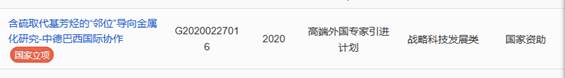 申报的国家外专局“高端外专引进计划”(含硫取代基芳烃的“邻位”导向金属化研究-中德巴西国际合作)项目获得国家正式立项,该项目由明星ai换脸