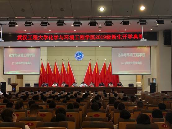 2019级新生开学典礼在四教多功能报告厅举行,学院党委副书记李正新、副院长董志兵、副院长余军霞、院长助理张华丽、工会主席陈伟、制药化学研究所所长陈云峰、环境化学研究所所长邱心泓、国家级环境与环工清洁生产实验教学示范中心副主任袁华、实验中心副主任郁先哲、学院学生工作办公室全体人员、新生班主任、教师代表和2019级全体本科和研究生新生参加开学典礼。典礼由学院党委副书记李正新主持。