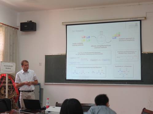 会议室做了题为“Novel Methods for the Synthesis of Biologically Active Substructures”的学术报告,报告会由化环学院副院长董志兵主持。