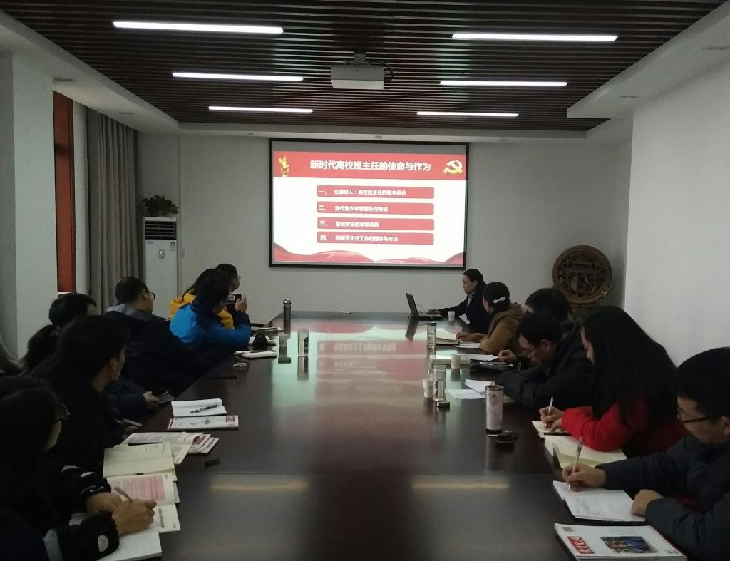 在学院会议室举办学习党的十九大精神专题辅导报告会。全体在家的学院领导,全体班主任、全体党支部书记共同参加。辅导报告会由学院党委副书记苏纯华主持。