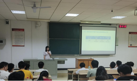 2018级环境工程01班的班主任,该班在郭老师的带领下,荣获过全校“优良学风班”荣誉称号,全班29名同学考研过线率79.3%,考研录取率65.5%,被985、211、双一流高校录取率达到41.4%。他有着深厚的学生情怀、丰富的带班经验、细腻的工作方法,他向同学们分享了2022届优秀毕业生的故事,通过有趣但不失哲理的真实故事向同学们阐释了职场的逻辑和真理。他表示,通过在职场中接触人和事、提升专业技能远比一时的薪资更为重要,自我认知、扩充人脉、搭建桥梁才能得到更多机遇。