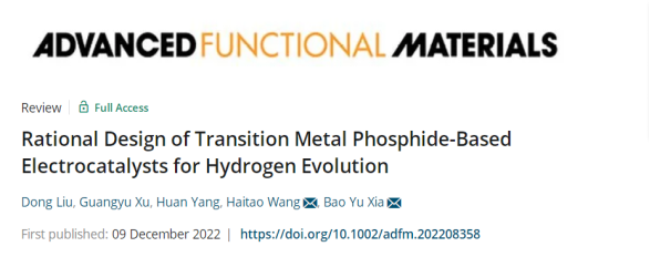 教师在国际权威期刊“Advanced Functional Materials”上发表综述论文。该论文系统地介绍了过渡金属磷化物电催化剂的合理设计及其在析氢反应中的应用,提出了该领域现存的挑战和未来可期的发展方向。相关成果以“Rational Design of Transition Metal Phosphide-Based Electrocatalysts for Hydrogen Evolution”为题在线发表,文章DOI号为10.1002/adfm.202208358。刘东副教授为论文第一作者,硕士生徐光宇为第二作者,明星ai换脸