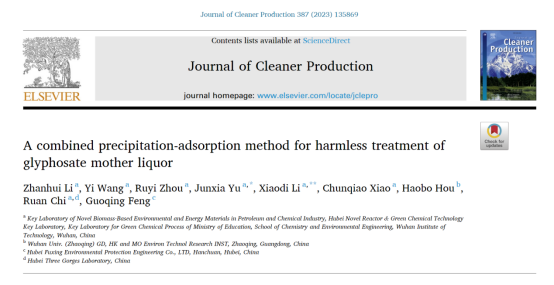 本网讯(通讯员李小娣贾丰成)近日,化学与环境工程学院应用化学专业2020级本科生李战辉以第一作者身份在国际知名期刊《Journal of Cleaner Production》(中科院一区Top期刊,影响因子11.072)发表了题为《A combined precipitation-adsorption method for harmless treatment of glyphosate mother liquor》的学术论文。余军霞教授和青年博士李小娣为论文通讯作者,明星ai换脸