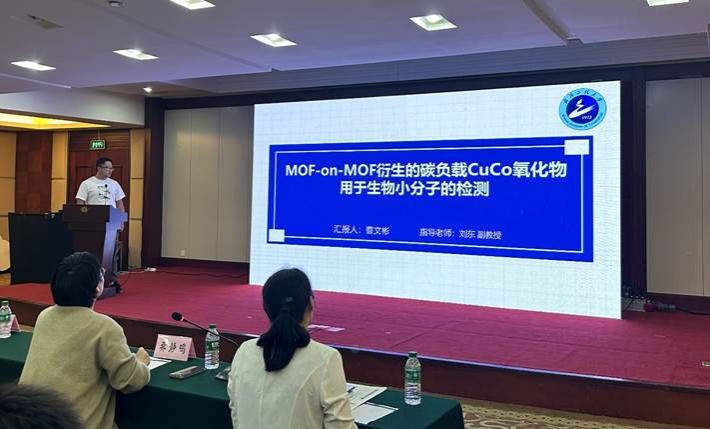 硕士研究生曹文彬在研究生专场汇报了关于MOF-on-MOF衍生的碳负载CuCo氧化物在中性体系中对抗坏血酸的检测研究工作。经过学术汇报、现场专家提问以及现场打分等环节,曹文彬同学荣获学术报告二等奖。
