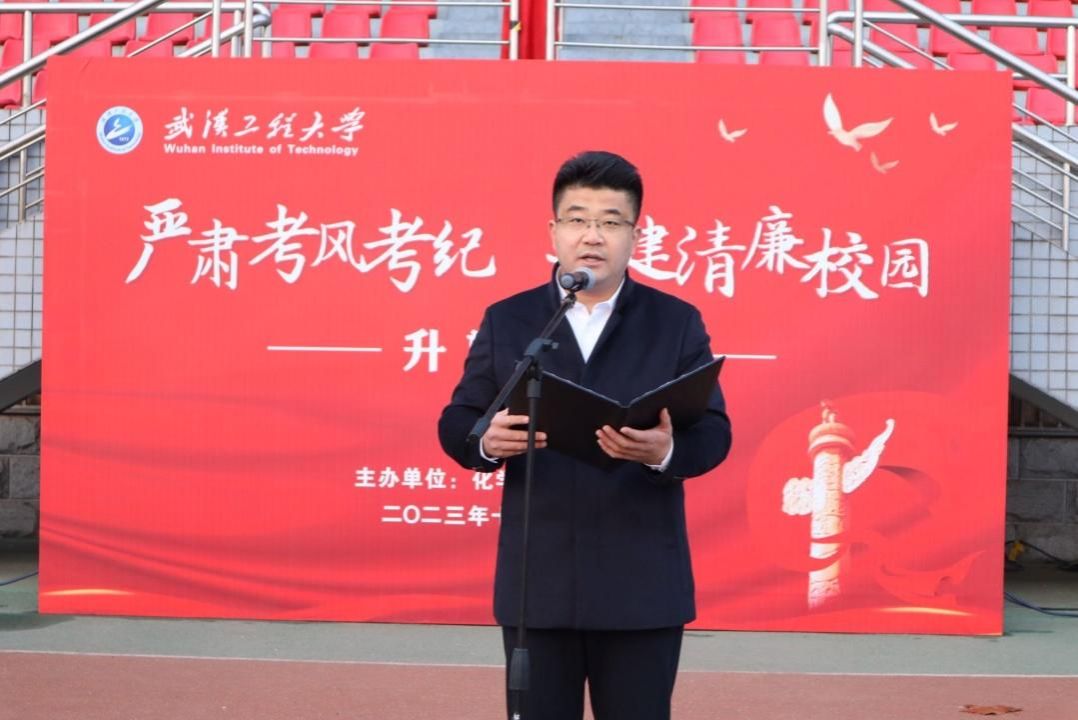 在田径场举办以“严肃考纪考风,共建清廉校园”主题升旗仪式,院党委书记张宗良、党委副书记许守飞、全体辅导员、2022级、2023级全体同学参加本次升旗仪式。