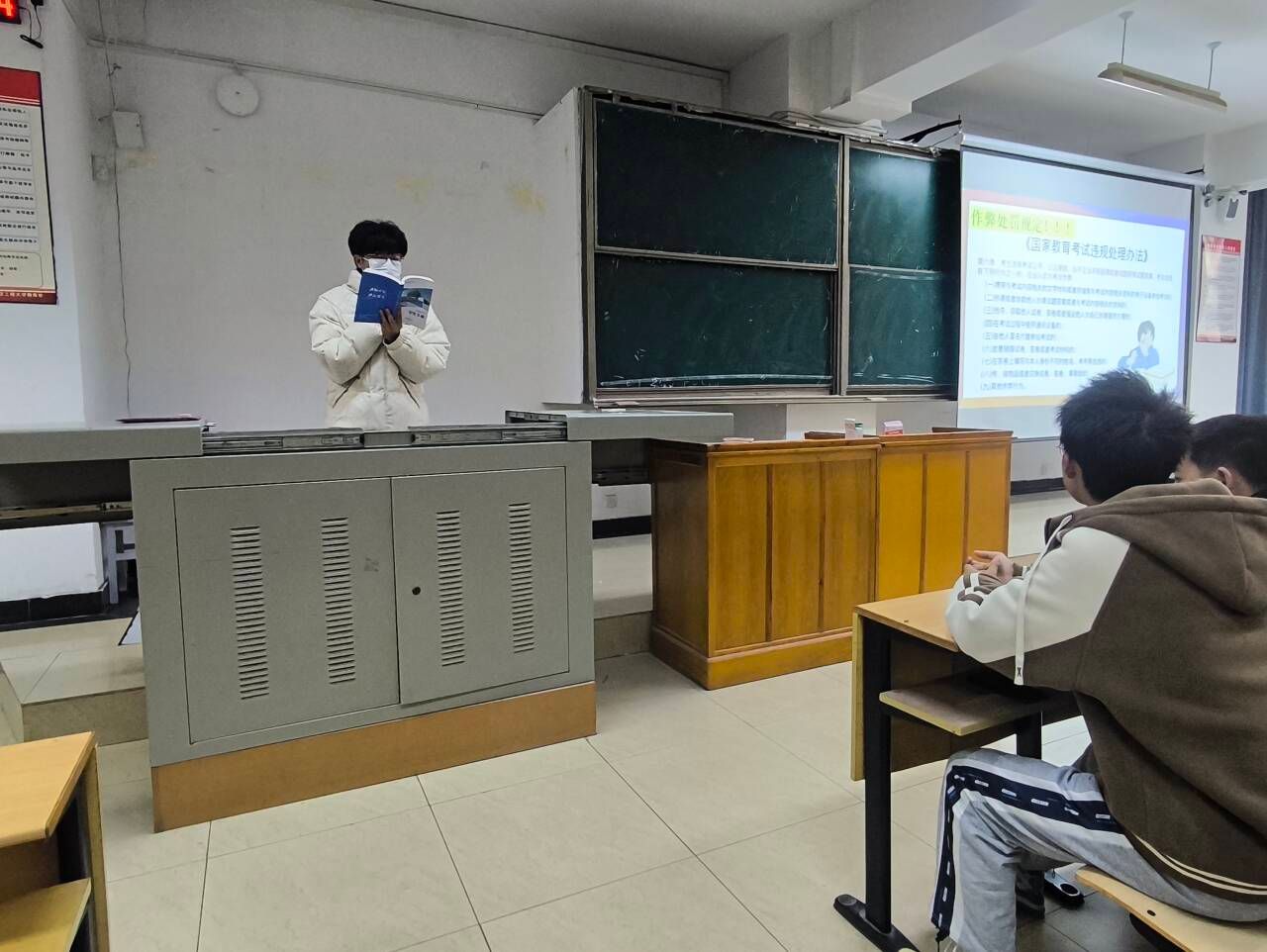 会议中,杨依婷从“考前及时复习,做好充分准备”“树立良好心态,轻松应对考试”“熟知作弊处分,做到诚信考试”三个方面展开教育,引导同学们树立正确的考试观,做诚信大学生。