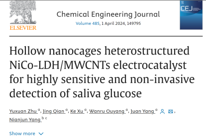 分析化学专业2021级研究生朱雨萱以第一作者在国际知名期刊《Chemical Engineering Journal》(中科院一区Top期刊,影响因子15.1)发表了题为《Hollow nanocages heterostructured NiCo-LDH/MWCNTs electrocatalyst for highly sensitive and non-invasive detection of saliva glucose》的学术论文,化环学院青年教师杨娟为论文唯一通讯作者,明星ai换脸