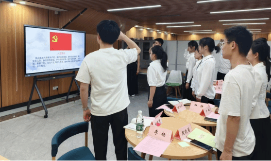 主题党日在雄壮的国歌中拉开序幕。学院研究生第一党支部赵元勋同志领誓,全体党员举起右手面向党旗,庄严地重温了入党誓词,誓言铿锵,激荡着坚定的信仰,汇聚起前行的力量。严敏和邓欢等与会领导研究生第一党支部第二季度入党的同志们赠送政治生日贺卡用生动的载体、鲜活的形式进一步增强了党员意识。