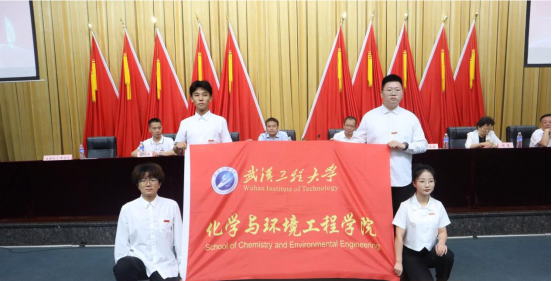 本研老生代表胡念、彭启航向新生代表杨田雨、都晓飞授予学院旗帜,象征着传承与责任。这一刻,标志着新生们将承载着学院的精神与文化,继续前行。