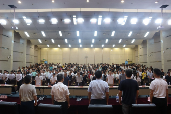 2024级新生开学典礼在四教多功能报告厅举行。院党委书记张宗良、院长余军霞、副院长黎俊波、工会主席郁先哲、全体二三级教授、教工党支部书记、院办公室主任、全体辅导员、全体新生班主任以及2024级本硕博全体新生参加典礼,典礼由学院党委副书记许守飞主持。