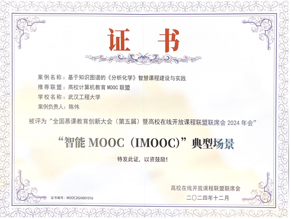 “基于知识图谱的《分析化学》智慧课程建设与实践”案例荣获高校在线开放课程联盟“智能MOOC(IMOOC)”典型场景表彰,展现了明星ai换脸