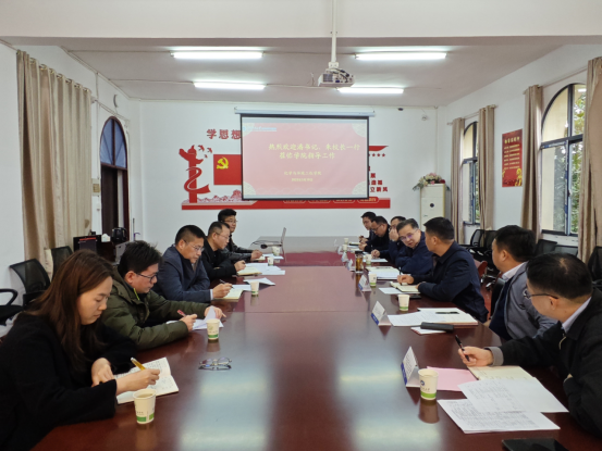 潘慧明听取学院汇报后,充分肯定了2025年标志性项目的谋划情况。希望领导班子要增强责任意识,紧盯年度目标任务,以“走在前列”的担当统筹推进各项工作,确保高质量完成学校部署的任务。他强调,一是要充分发挥学院党委引领作用,凝聚师生合力,千方百计吸引人才,鼓励“放权放人”,为学校高质量发展贡献更大力量。二是要学院在服务区域产业需求和推动学科特色发展方面取得成果,要牢牢把握“双一流”建设机遇,以学科建设为引领,加快整合校内外资源,在磷化工领域形成更具影响力的科研成果。三是要总结“十四五”,规划“十五五”,深化产教融合,强化与行业龙头企业的协同攻关,推动重大项目落地,加强定期盘点。