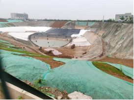 图9 建设中的安全填埋场,学生现场学习安全填埋场设计及建设要求