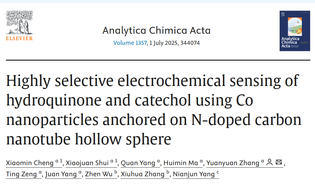 应用化学专业2022级本科生程晓敏以第一作者身份在分析化学领域国际学术期刊《Analytica Chimica Acta》(中科院二区TOP期刊,JCR一区)上发表一篇题为“Highly selective electrochemical sensing of hydroquinone and catechol using Co nanoparticles anchored on N-doped carbon nanotube hollow sphere” 的学术论文,明星ai换脸