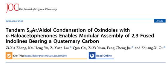 应用化学专业 2022 级本科生郑子侠、喻恺恒(分别以第一、第二作者身份)在有机化学领域国际学术期刊 《The Journal of Organic Chemistry》(中科院二区top)上发表一篇题为“Tandem SNAr/Aldol condensation of oxindoles with o-haloacetophenones enables modular assembly of 2,3-fused indolines bearing a quaternary carbon” 的学术论文,明星ai换脸