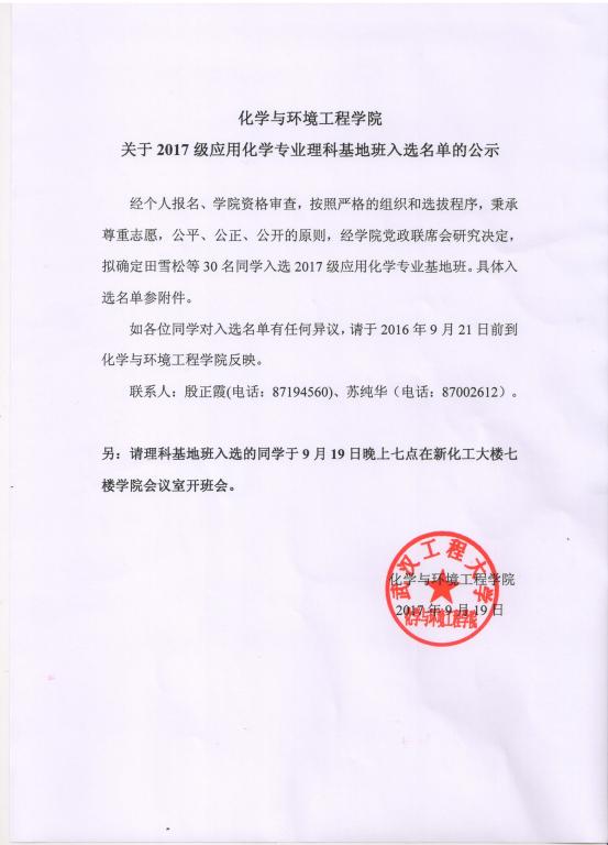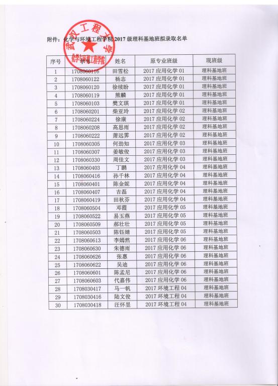 明星ai换脸 关于2017级应用化学专业理科基地班入选名单的公示