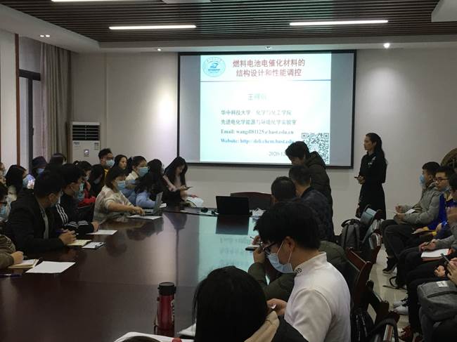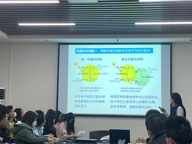 相关师生分别做了题为《燃料电池电催化材料的结构设计和性能调控》、《多孔复合光催化体系》的学术报告,报告会由化环学院院长余军霞主持。