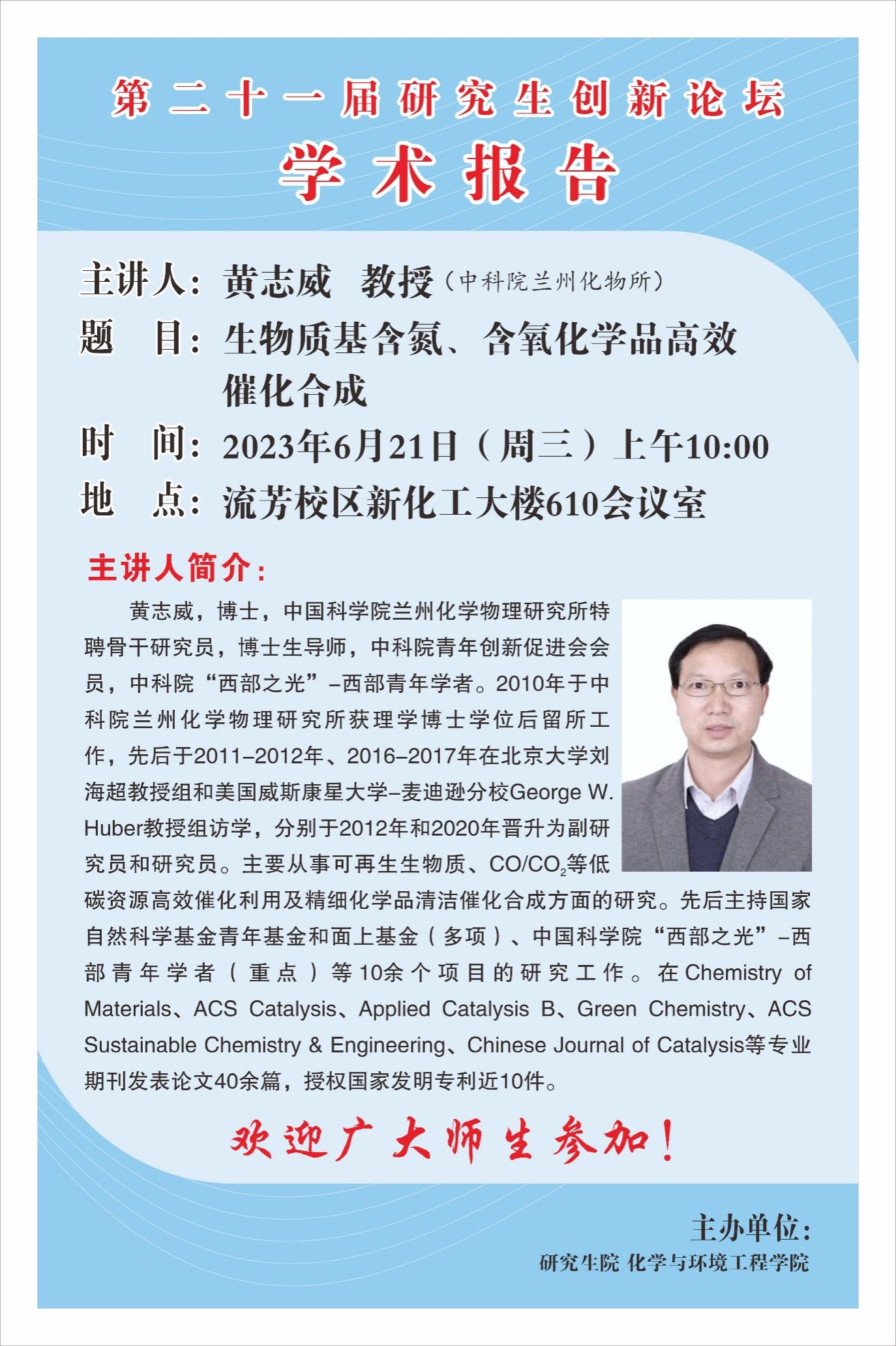 【第二十一届研究生创新论坛学术报告】生物质基含氮、含氧化学品高效催化合成
