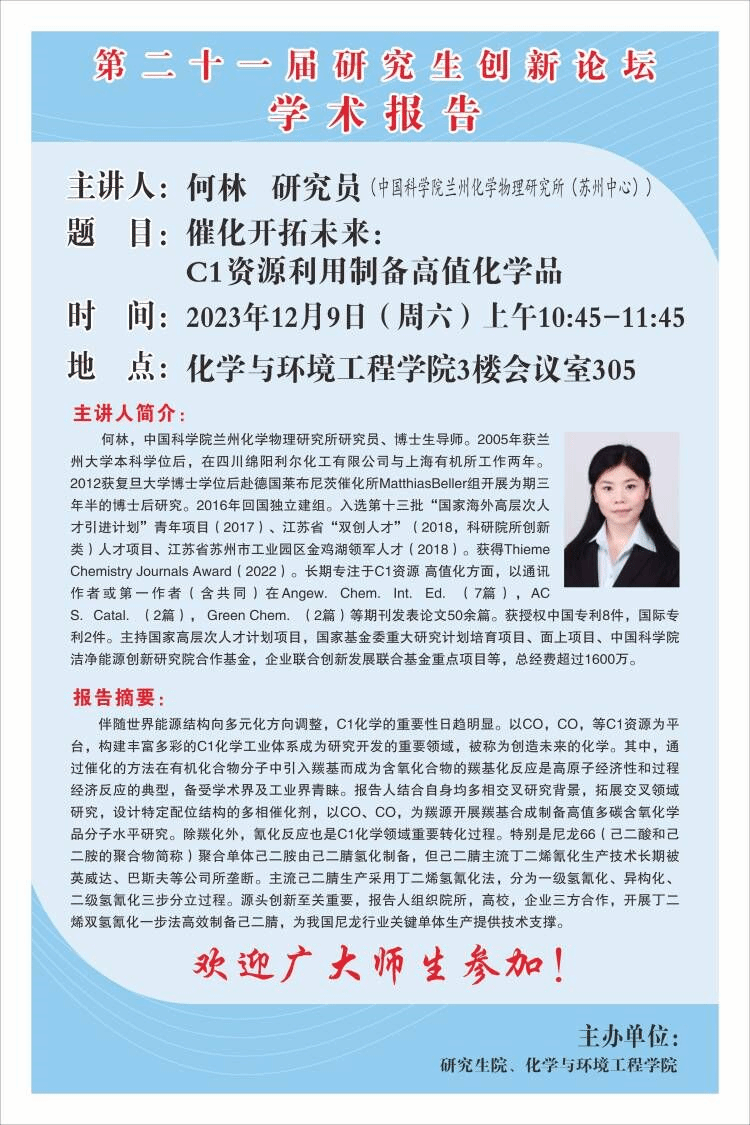 【研究生创新学术论坛】催化开拓未来:C1资源利用制备高值化学品