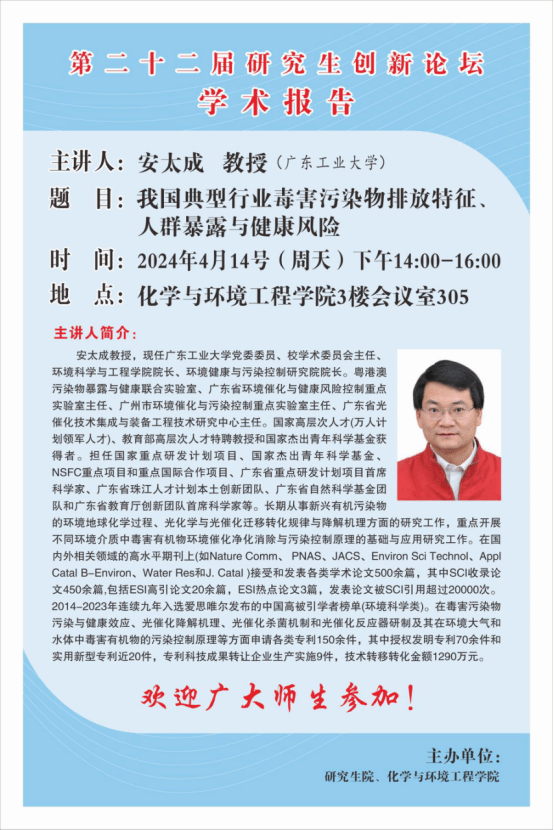【研究生创新学术论坛】我国典型行业毒害污染物排放特征、 人群暴露与健康风险