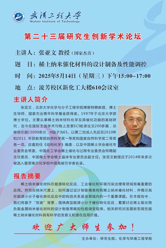 【第二十三届研究生创新学术论坛】稀土纳米催化材料的设计制备及性能调控