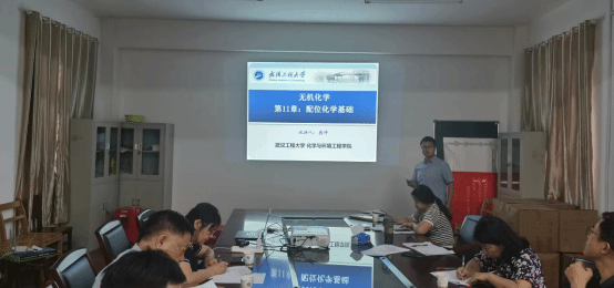 新入职教师樊坤围绕“无机化学配位化学基础”进行讲授。评委们肯定了樊坤讲授中前呼后应,20分钟讲述内容完整。同时建议在实际授课时应加强师生互动,培养学生独立思考的能力。